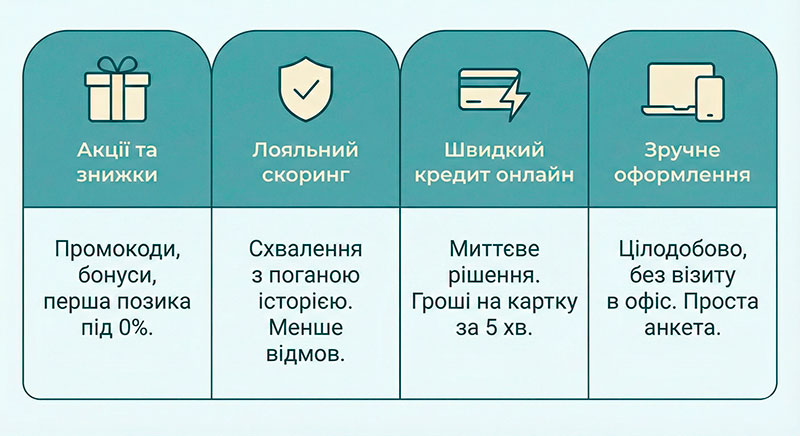 Пошук вигідних акцій. Нові МФО в Україні часто пропонують знижені ставки на першу мікропозику, промокоди, кешбек або інші бонуси, щоб швидше залучити аудиторію.
